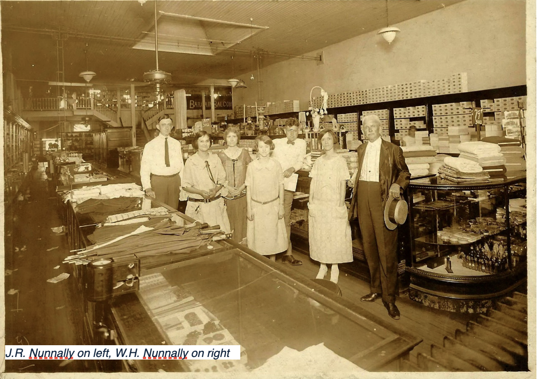 The business eventually took the name “W.H. Nunnally & Co.” Nunnally did not let grass grow under his feet. He established the Monroe Telephone Company, was on the Monroe Oil & Fertilizer Company board, and was Vice President of the Bank of Monroe. Soon after W.H. Nunnally died in 1930, the building and business were sold to the Gallant-Belk Company.